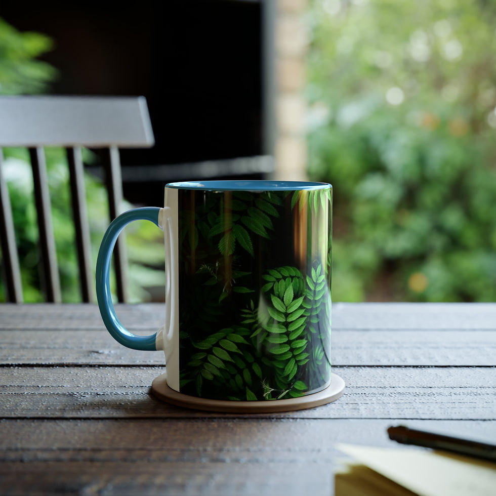 Green Leaf Two-Tone Coffee Mugs, 11oz